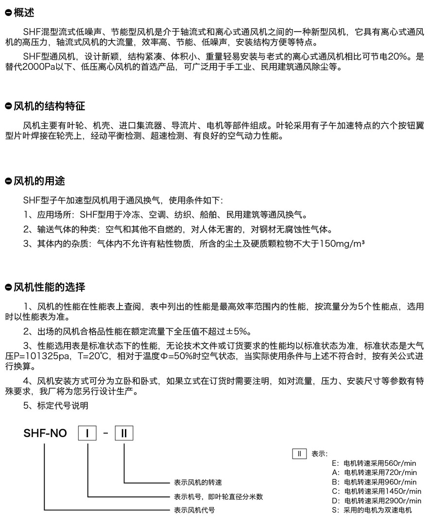 SHF混型流式低噪聲、節(jié)能型風機是介于軸流式和離心式通風機之間的一種新型風機, 它具有離心式通風 機的高壓力,軸流式風機的大流置,效率高、節(jié)能、低噪聲,安裝結(jié)構方便等特點。 SHF型通風機,設計新穎,結(jié)構緊湊、體積小、重置輕易安裝與老式的離心式通風機相比可節(jié)電20%。